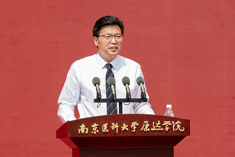 张家炯副市长代表市委市政府向学有所成的同学们表示祝贺,并向辛勤耕耘的教职员工们致以敬意。他用“三心”寄语同学们,希望全体毕业生以“仁心”守护生命,用专业诠释担当,以“雄心”筑梦港城,用热爱谱写新篇,以“恒心”砥砺奋进,用实干成就梦想。
