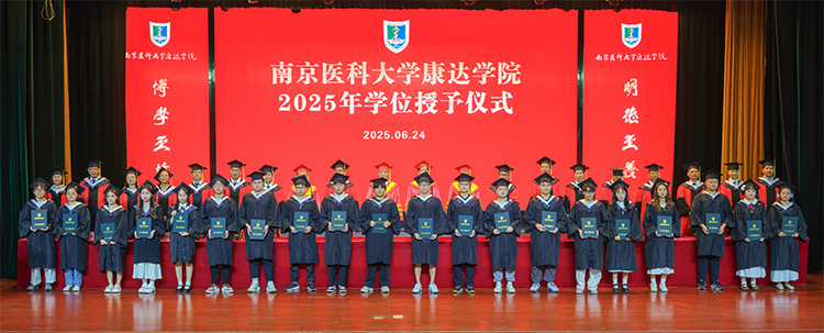 南京医科大学党委办公室主任哈维超宣读《关于表彰南京医科大学康达学院2025届优秀毕业生的决定》、《关于同意陈天昊等235名同学获得特色班证明书的决定》和《关于聘任吕奕铖等156名同学为南京医科大学康达学院2025届校友联络员的决定》。主席台领导为毕业生代表颁发毕业证书,为优秀毕业生、特色班毕业生代表颁发荣誉证书,为校友联络员代表颁发聘书。